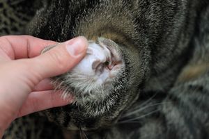 Используйте такой же способ для закапывания ушей кошки лекарством, кроме шагов 2 и 8.