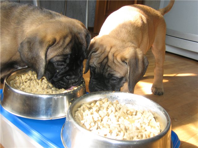 Лучше всего покупать готовые корма, желательно высококачественные. Ваш маленький друг, возможно, с охотой будет уплетать дешёвый корм; но это не свидетельствует о его пользе. Недорогой «собачьей еды» понадобится больше, чем качественной; поэтому вряд ли здесь стоит говорить об экономии. А вот плохая перевариваемость будет обеспечена. Как дополнительные признаки употребления дешёвого корма можно отметить отвислый живот, неразвитую мускулатуру и кости. К тому возрастает восприимчивость к инфекциям. Нельзя кормить щенка и остатками пищи со стола. Это чревато нарушением питательного баланса. Главная здесь проблема – невозможность получения необходимого баланса питательных веществ. Допустимо давать немного овощей, фруктов.