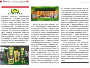 P.S.Эту статью мы подготовили в ответ на публикацию в журнале «Зообизнес в России» №2 за 2008 год (стр. 6), которую, как мы надеялись, редакция журнала опубликует в ближайшем номере и развернет дискуссию по вопросу оказания выставочных услуг в сфере зообизнеса.