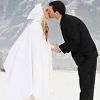 Зимой получаются очень красивые свадебные фотографии Невеста в белом одеянии, а вокруг белый снег и сугробы. И подчеркивает, все это великолепие, жених в темном костюме.