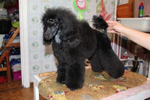Хвост Поставлен относительно высоко — на уровне поясницы. Купируется у кудрявых пуделей таким макаром, чтобы осталась 1/3 или 1/2 часть от всей длины. Длинный хвост, при условии, что собака правильно его несет, не считается недостатком.