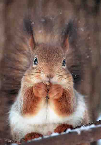 В естественных условиях белки питаются семенами ели и сосны, делают на зиму большие запасы сушеных грибов, ягод, орехов.